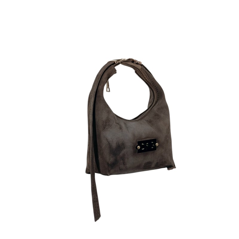 The DRG Mini Muse is the bag that will capture every gaze. Compact in size — 27 × 21 × 10 cm — yet bold in character, this exceptional creation by DE RAGGI redefines the essence of elegance. Handcrafted in Greece from a premium material containing 45% natural leather with a luxurious suede finish and deep color, it radiates femininity and timeless style. Its rounded silhouette, distinctive top cut, and signature DRG metallic detail with golden screws add a refined touch, while the adjustable decorative strap with metal rings ensures both comfort and sophistication. Each piece comes with a written warranty.