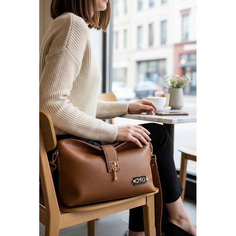 The De Raggi shoulder bag is an elegant and functional bag that combines modern design with practicality in everyday use. The balance between clean lines and careful details creates a timeless accessory that can comfortably accompany any look. Its exterior is made of high-quality artificial leather, a durable and pleasant to the touch material that offers elegant aesthetics and practicality in everyday life. Its interior features a high-quality leather lining, which is breathable and absorbent, contributing to the proper protection of personal belongings and comfortable daily use. The bag is designed to offer practical organization: Two internal pockets, of which one with a zipper for safe storage one open for immediate access to small items The bag closes with a zipper at the top, offering greater security for personal belongings. The strap of the bag is adjustable, allowing it to be worn comfortably on the shoulder or crossbody, depending on the style and need of everyday life. Each piece is made with attention to detail and with high quality standards. Designed & Handcrafted in Greece. Dimensions: Height: 23 cm Length: 35 cm Width: 13cm
