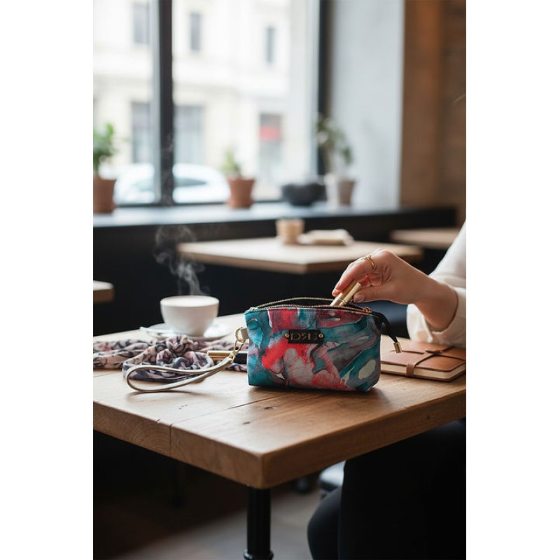 Elegant and practical, the floral clutch by De Raggi is an ideal choice for everyday use as well as for more special appearances. The striking floral pattern creates a modern and timeless aesthetic that easily matches many styles. The bag has a detachable wrist strap, allowing it to be worn comfortably in the hand, while its small size makes it ideal for carrying essential personal items. The exterior is made of high-quality cotton fabric, which offers durability and a pleasant texture. Inside, it has a high-quality leather lining, which is breathable and absorbent, contributing to better protection of the items. For better organization, there is a practical internal pocket without a zipper for small items. The main opening of the bag closes with a zipper, offering security and practicality in everyday use. The metal De Raggi logo on the front completes the design, adding a subtle touch of luxury. Designed & Handcrafted in Greece