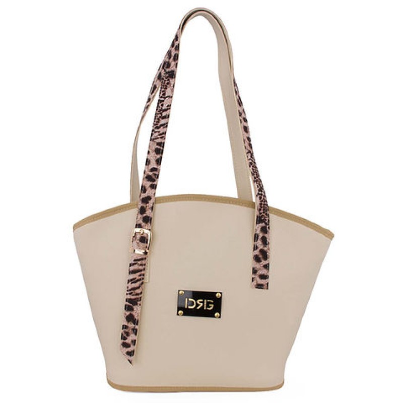 Women's Animal Print Shoulder Tote Bag 26133-1211 De Raggi Cream