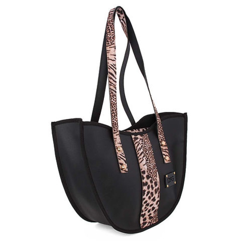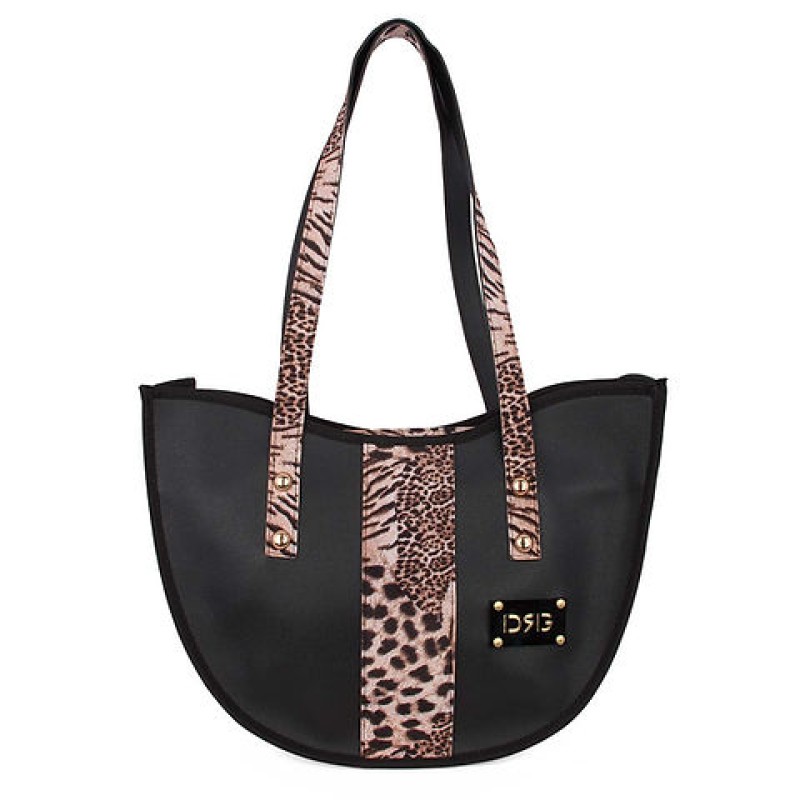 Women's Animal Print Curved Tote Bag 26135-1210 De Raggi Black