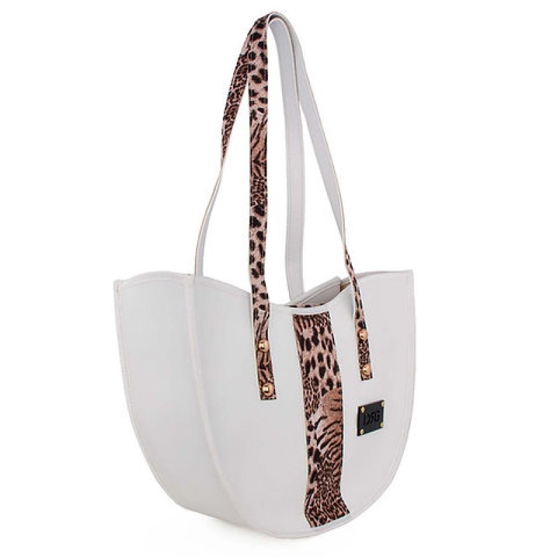 Women's Animal Print Curved Tote Bag 26135-1210 De Raggi White