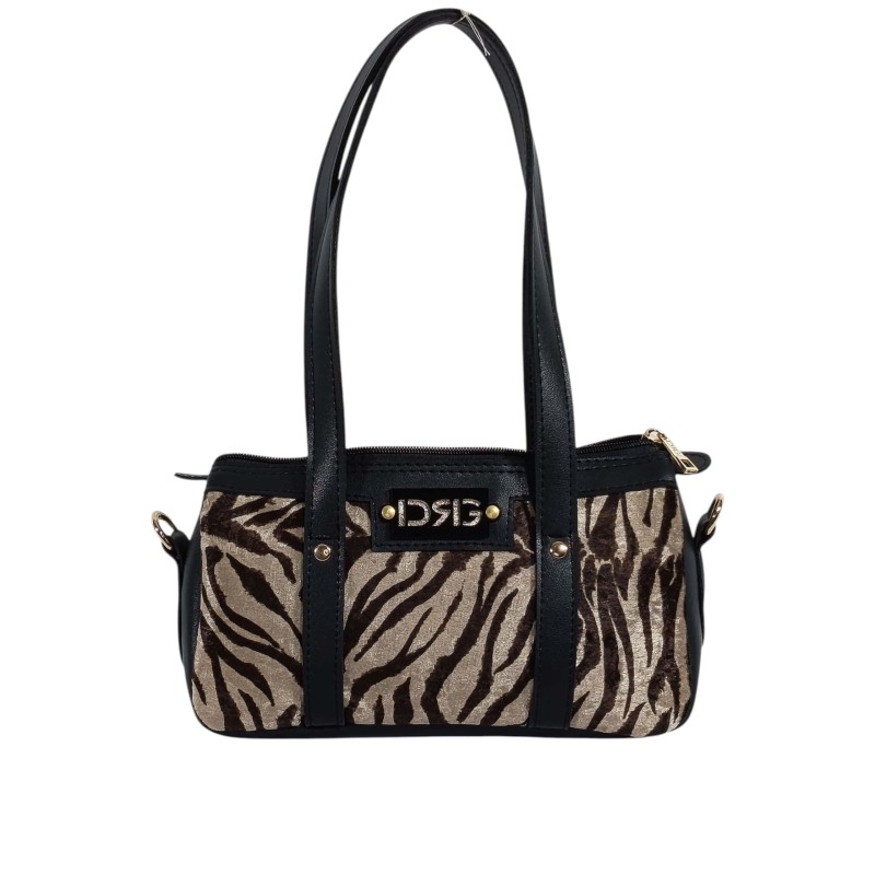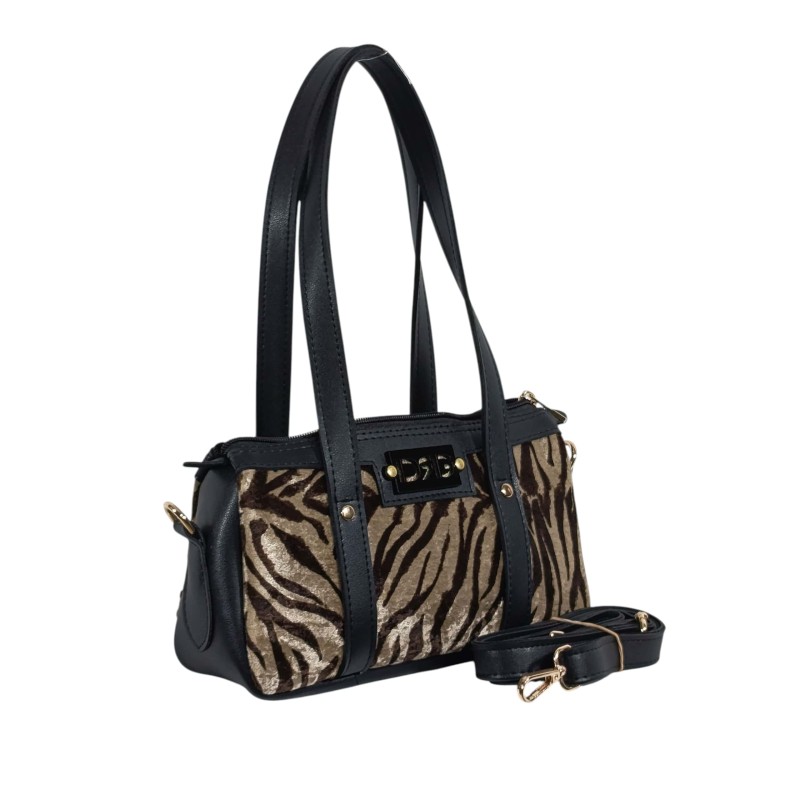 The DE RAGGI “Zebra Barrel” Crossbody Bag embodies modern luxury and geometric elegance. Measuring 16 × 26 × 9 cm, it features a cylindrical silhouette with velvety zebra print, tan high-quality artificial leather accents, and the signature DRG metal logo. Handcrafted in Greece with meticulous attention to detail, it offers dual top handles, a detachable shoulder strap, and a fully lined interior with practical compartments—perfect for everyday use or a premium, statement look.