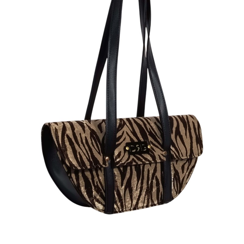 The DE RAGGI “Zebra Curve” Shoulder Bag is a masterpiece of modern elegance and timeless style. With dimensions of 19 × 32 × 9 cm, it features a curved silhouette, luxurious zebra velvet texture, and dual leather handles for both comfort and sophistication. Handcrafted in Greece from artificial leather with a leather lining, it offers a spacious interior, reinforced construction, and the signature DRG metal logo, making it a standout accessory for everyday wear, professional settings, or evening outings.