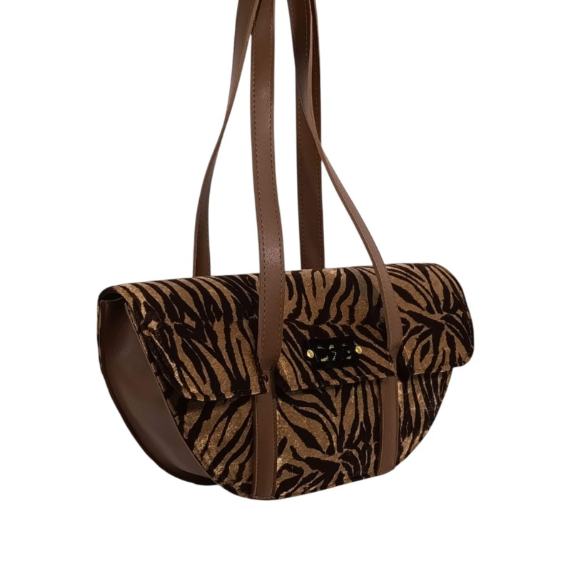 The DE RAGGI “Zebra Curve” Shoulder Bag is a masterpiece of modern elegance and timeless style. With dimensions of 19 × 32 × 9 cm, it features a curved silhouette, luxurious zebra velvet texture, and dual leather handles for both comfort and sophistication. Handcrafted in Greece from artificial leather with a leather lining, it offers a spacious interior, reinforced construction, and the signature DRG metal logo, making it a standout accessory for everyday wear, professional settings, or evening outings.