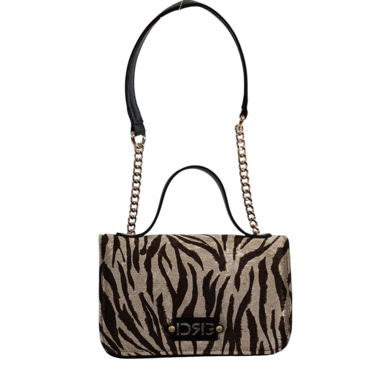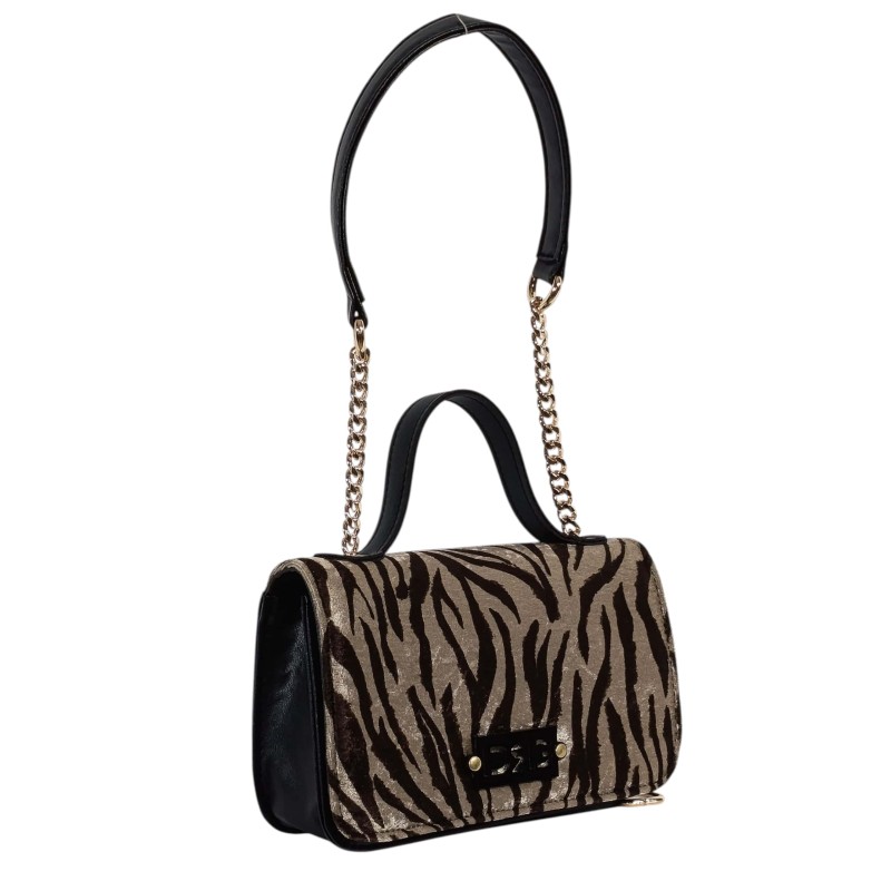 The DE RAGGI “Zebra Icon” Shoulder Bag is the epitome of Greek luxury design. Measuring 15 × 23 × 7 cm, it features a velvety zebra texture in earthy tones, a gold-tone shoulder chain, and a practical top handle for versatile styling. Handcrafted in Greece from artificial leather with a leather lining, it combines timeless elegance with high-quality materials and finishes, making it perfect for day-to-night looks while showcasing the signature DRG metal emblem.